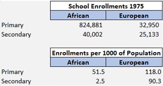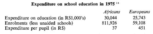 In 1975, Rhodesian government statistics showed that “the amount spent on the education of each African child [was] less than one-twelfth of that spent on his ‘European’ counterpart”[52]: